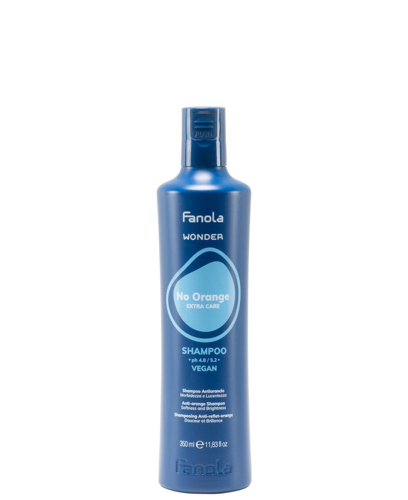 FANOLA Wonder No Orange Extra Care Shampoo neutralises unwanted orange and brassy tones while delivering intensive care to colour-treated hair.